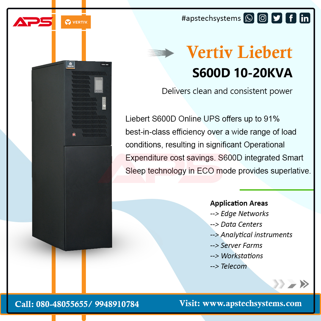 Vertiv S600D online ups system designed for various deployments, including IT racks, network closets, automation control systems, precision instruments, and small control rooms. delivers clean and consistent power.