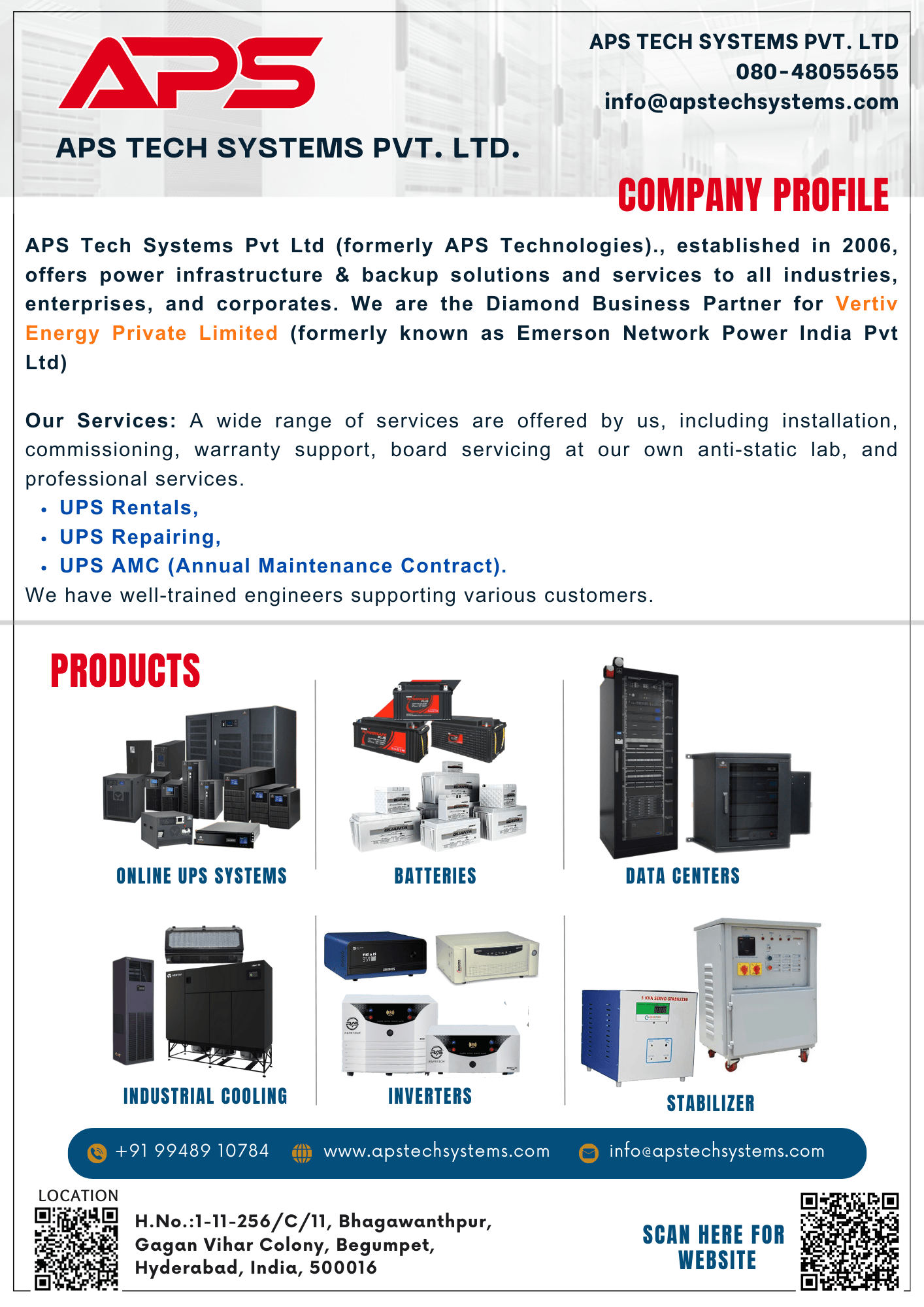 We have 19 years of experience in the market, We deal with Online UPS, Data Centers, Batteries, Inverters, and Industrial Cooling Systems.