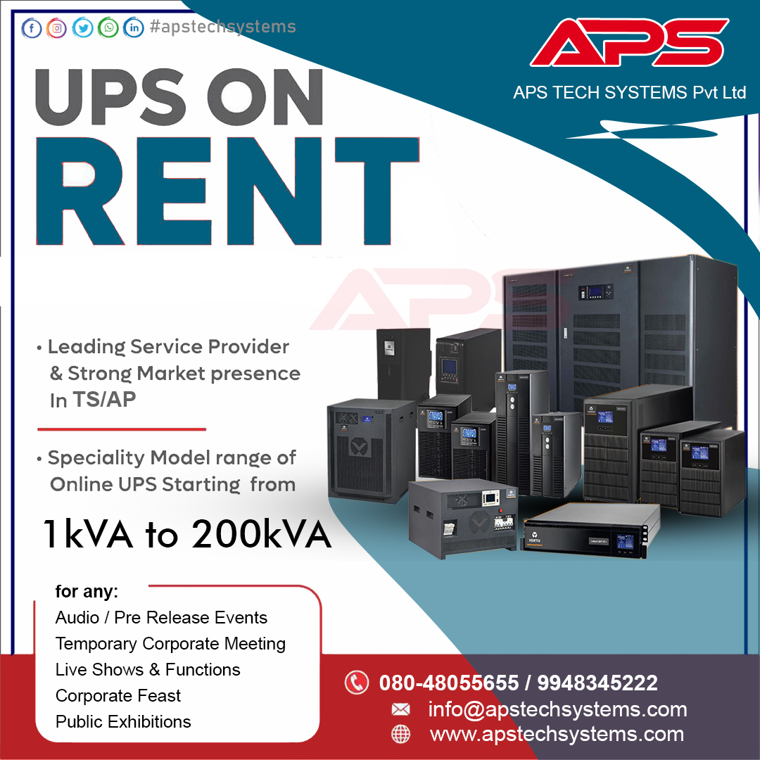 we are offering a premium quality UPS and Battery Rental Services in AP and TS. For any offices, industries, residences, events, workshops, or any outdoor or indoor activities.
