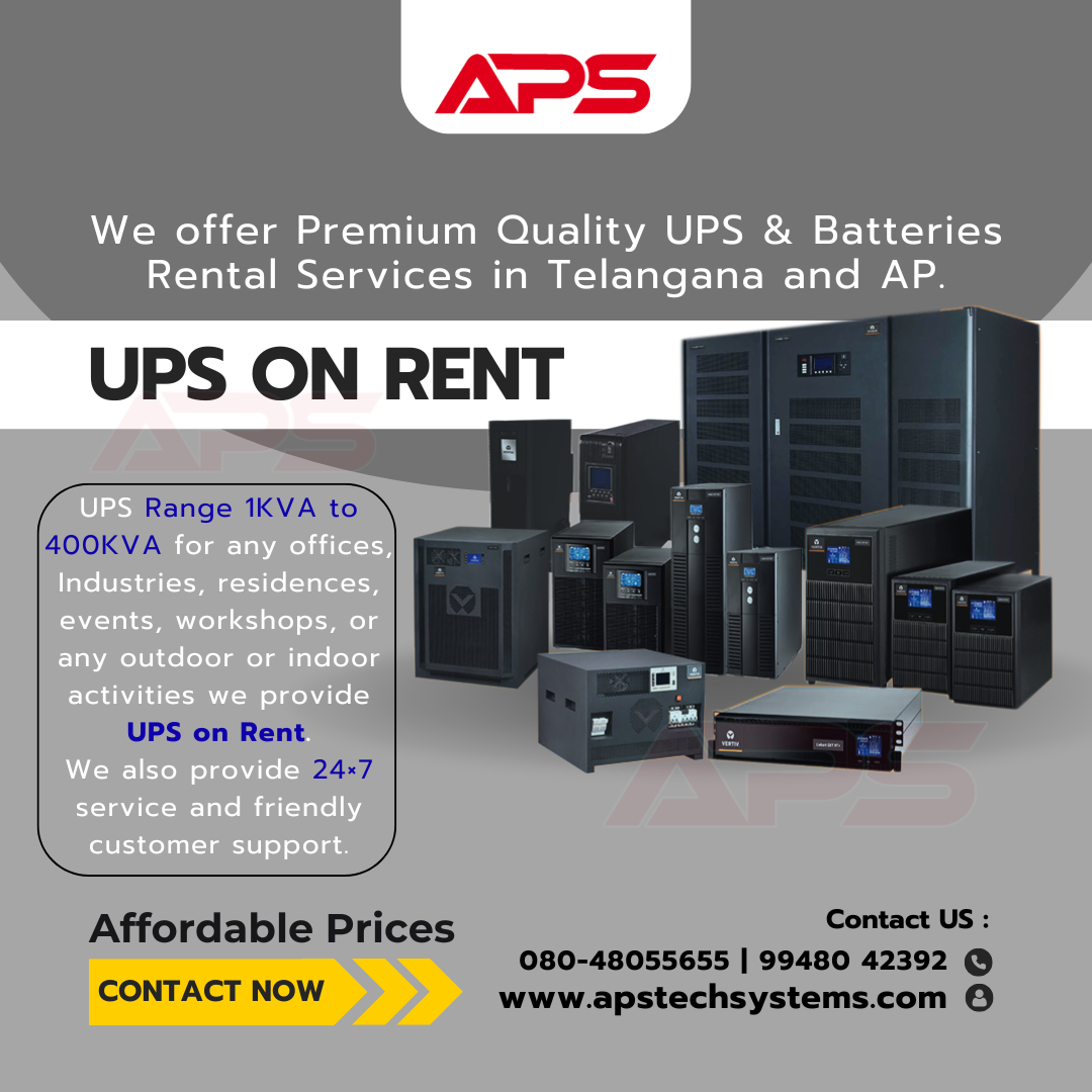 UPS On Rent in Hyderabad We offer Premium Quality UPS & Batteries Rental Services in Telangana and AP. Contact: 080-48055655 | 99489 10784